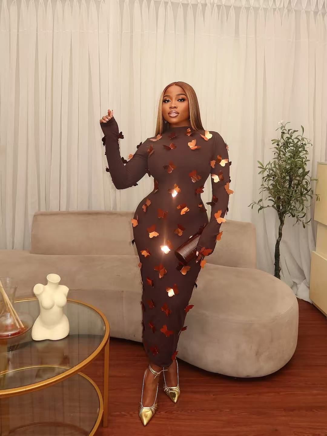 Burgundy Sequin Mermaid Gown with Feather Trim